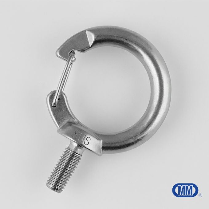 従来のアイボルトに開閉できるフックが付いているので、設置後に物を通すこともできます。